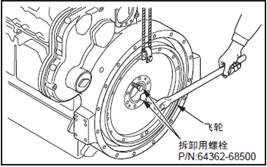 (2) 均等的旋入2個拆卸用螺栓,將三菱S6R柴油發(fā)動機飛輪拆下。