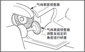 注:(a) 三菱S6R柴油發(fā)動(dòng)機(jī)氣閥門(mén)表面修整器調(diào)整至規(guī)定的角度,研磨三菱S6R柴油發(fā)動(dòng)機(jī)氣閥門(mén)。