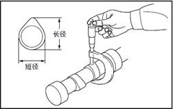 測量三菱S6R柴油發動機凸輪軸頸部正交兩個方向的外徑。超過極限值時更換新的三菱S6R柴油發動機凸輪軸。