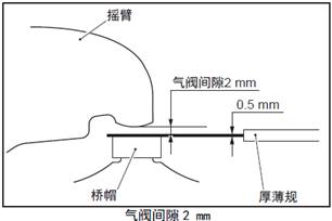 (1) 將0.5 mm的厚薄規(guī)插入在橋帽和搖臂之間。(三菱S6R柴油發(fā)動機氣閥門間隙2 mm)