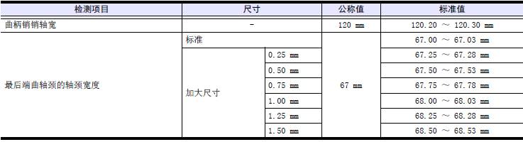 超過極限值時更換新的三菱S12柴油發動機推力片。根據三菱S12柴油發動機曲軸的磨損程度,在三菱S12柴油發動機曲軸重新研磨使用時,使用加厚尺寸的三菱S12柴油發動機推力片。三菱S12柴油發動機曲軸的研磨要領參考「三菱S12柴油發動機本體的檢測、修理」的「最后端三菱S12柴油發動機曲軸頸的軸頸寬度研磨」項。