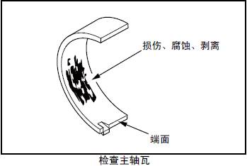 檢查主軸瓦的表面、背面和端面,如有接觸不良、滑動損傷、腐蝕、異物嵌入等異常時更換新品。