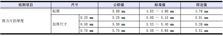 注: 使用的前后2片三菱S12柴油發動機推力片的厚度差不超過0.25 mm。
