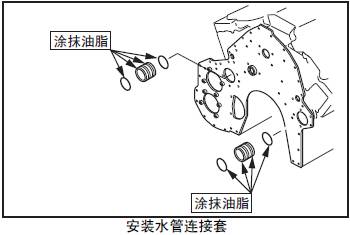 (2) 安裝三菱S12柴油發動機缸體和齒輪箱的水管連接套,注意不要損傷O形圈。