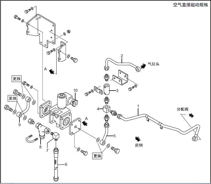空氣管、起動閥、分配閥的拆卸