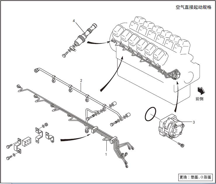 1. 拆卸三菱S12柴油發動機空氣起動系統