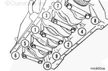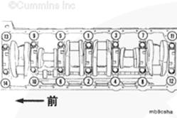 注: 主軸承蓋有位置編號(hào)。從缸體前端的 1 號(hào)開(kāi)始,編號(hào)必須朝向康明斯ISB5.9 G CM2180發(fā)動(dòng)機(jī)的凸輪軸側(cè)。