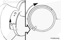 將盤(pán)車(chē)工具(零件號(hào) 3824591)插入飛輪殼中,并使其與飛輪齒圈嚙合。然后可以手持 1/2-英寸棘輪扳手或撬棍,轉(zhuǎn)動(dòng)曲軸。