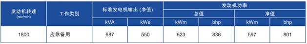 功率:于1800 rev/min時,597kWm