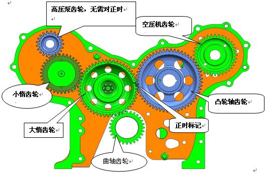 4.曲軸正時齒輪,正時惰齒輪,凸輪軸正時齒輪有嚴格的正時對準記號,請注意對正;