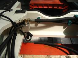 用工裝尺子量下邊履帶軌與下車架護(hù)輪架之間的距離,若距離大,將潤滑油槍放在沖注閥上注入潤滑劑直到履帶與護(hù)輪架之間的距離達(dá)到工裝尺子的長度。