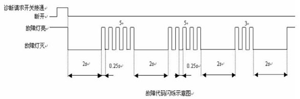 按下—松開診斷請(qǐng)求開關(guān)即可激活閃碼。每一次操作只閃爍一個(gè)故障碼,依次進(jìn)行即可讀完所有故障碼。