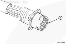 如果提供了(屏蔽)觸針,則測量 9-針 Deutsch™ 接頭的 SAE J1939 數據通信接口(屏蔽)觸針與發動機缸體或底盤接地之間的電阻。SAE J1939 數據通信接口屏蔽必須接地在車輛蓄電池接地處。萬用表必須顯示為閉路(10 歐姆或更小)。如果電路不是閉路,請參考《OEM 故障診斷及排除手冊》了解維修說明。