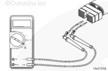 測量康明斯qsb5.9發動機 SAE J1939 數據通信接口(屏蔽)觸針(如果可用)與接頭上的所有其他觸針之間的電阻,每次測量一個觸針。萬用表必須顯示開路(100K 歐姆或更大)。