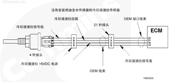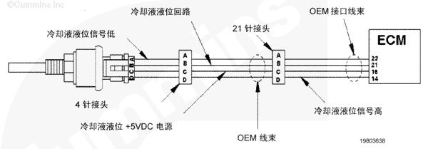 冷卻液液位傳感器監(jiān)測(cè)冷卻系統(tǒng)中的冷卻液液位,并將信息通過(guò) OEM 線(xiàn)束傳送至 CM500 康明斯QSK78電子控制模塊 (ECM)。