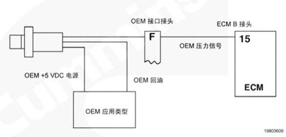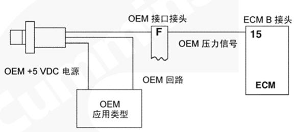 油門(mén)踏板通過(guò) OEM 線(xiàn)束和 OEM 接口線(xiàn)束向 CM500 ECM 提供駕駛員油門(mén)指令。CM500 ECM 利用此信號(hào)來(lái)確定燃油油軌執(zhí)行器閥的供油指令。