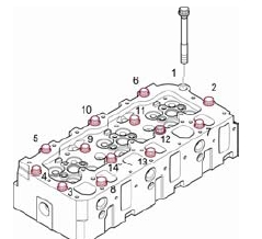 � 在氣缸蓋螺栓上涂發(fā)動(dòng)機(jī)油,根據(jù)組裝的順序,使用規(guī)定扭矩進(jìn)行組裝。