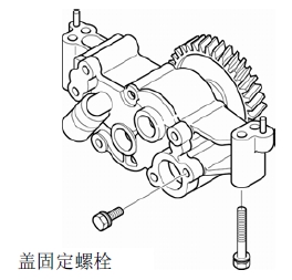 (2) 取下機油泵蓋固定螺母,拆下機油泵蓋。機油泵蓋與兩個定位銷固定在一起。
