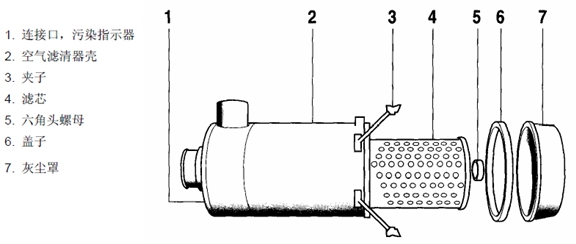 2) 空氣濾清器元件堵塞更換或清洗