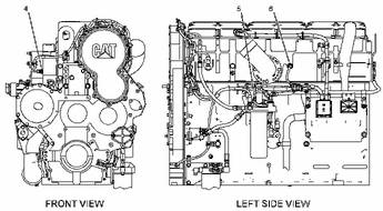 典型的 C15 和 C18 傳感器位置 (4) 發(fā)動(dòng)機(jī)冷卻液溫度傳感器 (5) 燃油溫度傳感器 (6) 進(jìn)氣歧管空氣溫度傳感器 |