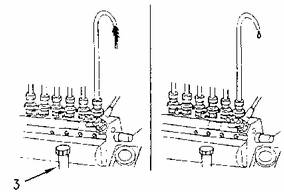 操作起動(dòng)注油泵。轉(zhuǎn)動(dòng)發(fā)動(dòng)機(jī)曲軸,直至燃油停止流動(dòng)。讀出在曲軸皮帶輪正時(shí)標(biāo)記上指示出的數(shù)字。對(duì)于3064發(fā)動(dòng)機(jī),噴油正時(shí)提前應(yīng)該為BTC8度或BTC20度。對(duì)于3066發(fā)動(dòng)機(jī),噴油正時(shí)提前應(yīng)該為BTC10度或BTC16度。關(guān)于噴油正時(shí),參見(jiàn)氣門(mén)室蓋上的發(fā)動(dòng)機(jī)信息標(biāo)牌。關(guān)于其他技術(shù)數(shù)據(jù),參見(jiàn)技術(shù)營(yíng)銷信息(TMI)。若要修正噴油正時(shí),轉(zhuǎn)動(dòng)燃油泵。請(qǐng)參閱步驟3。