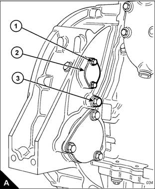 7 Remove the plug (A) from the timing bolt location in the flywheel housing and fit the timing bolt.