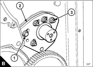4 Fit the idler gear. Retain with the thrust plate and three bolts. Check again the backlash between the