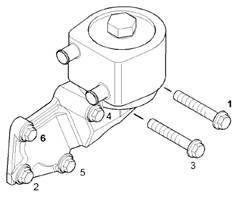 4.將新密封圈(7)安裝到適配器(3)上。將適配器(3)穿過(guò)機(jī)油冷卻器體(4)安裝到機(jī)油冷卻器座(9)中。將適配器(3)擰緊至扭矩57N·m(42lbft)。
