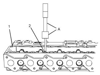 檢查氣門導管(2)的精加工直徑。有關更多資料,請參閱《技術規格》,“缸蓋-氣門”。