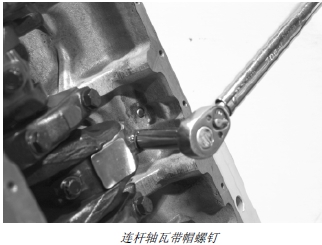 重要提示: 用氣動扳手安裝帶帽螺釘可能會損壞螺紋。禁止重復使用連桿帶帽螺釘。