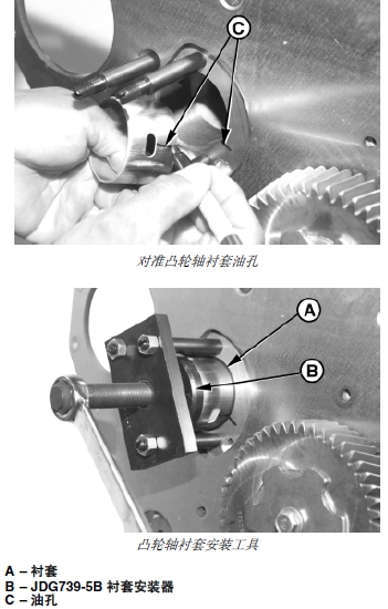 約翰迪爾強鹿柴油發動機前板的凸輪軸襯套拆卸和安裝