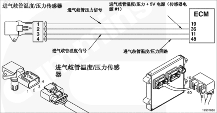 進氣歧管 1 壓力/溫度溫度傳感器位于進氣管道中。