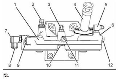 5. 斷開(kāi)軟管總成(3)。斷開(kāi)軟管總成(5)。斷開(kāi)軟管組件(7)和(8)。塞住打開(kāi)的軟管組件。