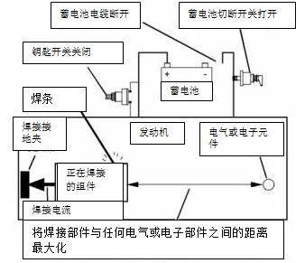 驅動設備的組件也應該被考慮. 如有可能, 應拆下需要焊接的組件. 但當在裝備了珀金斯ECM的發動機上焊接時,是不能拆下組件的,那么就應該按照接下來的步驟操作。這個過程能使電子組件的風險最小化。