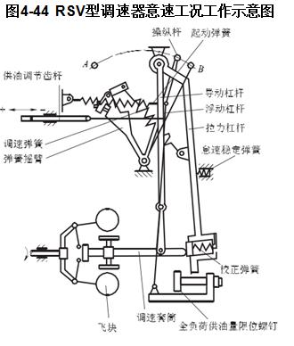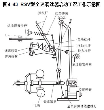圖4 - 42所示為國產A型噴油泵上采用的RSV型全速調速器,與RAD型兩速調速器基本相同,但為了實現柴油機工作轉速范圍內的全速調節控制,因而增設了以下結構: