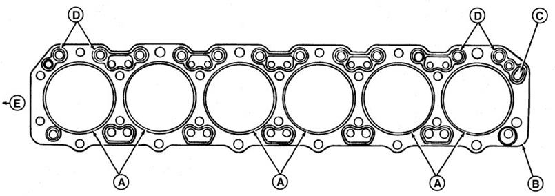 5.觀察拆下的JOHN DEERE六缸發(fā)動機缸蓋墊片的表面。