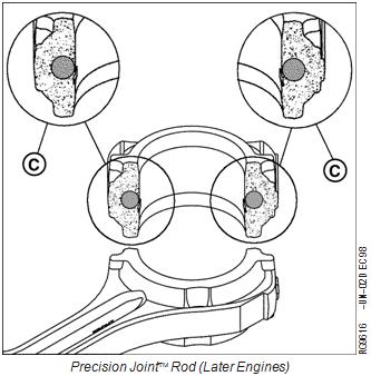 重要事項:更換相同類型的桿。不要將榫舌和凹槽與精密接頭混合 同一臺強鹿約翰迪爾John Deere柴油發動機中的連桿。有關建議,請參見零件目錄。