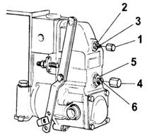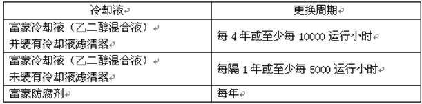 VOLVO沃爾沃柴油機(jī)的維修保養(yǎng)基本知識(shí) 安全注意事項(xiàng) VOLVO沃爾沃柴油發(fā)動(dòng)機(jī)每日檢查項(xiàng)目 養(yǎng)成在起動(dòng)發(fā)動(dòng)機(jī)之前和停機(jī)后直觀檢查發(fā)動(dòng)機(jī)的習(xí)慣。這有助于你及時(shí)發(fā)現(xiàn)燃油、潤(rùn)滑油或冷卻液的泄漏和其它一些已經(jīng)發(fā)生或?qū)⒁l(fā)生的異常情況。 VOLVO沃爾沃柴油發(fā)動(dòng)機(jī)一般的常規(guī)保養(yǎng) a) 檢查/更換空氣濾清器 發(fā)動(dòng)機(jī)停機(jī)后,空氣阻塞指示器如仍滯留紅標(biāo)時(shí),則應(yīng)更換空氣濾清器。更換后應(yīng)按壓阻塞指示器上的按鈕使其指示復(fù)位。 注意!空氣阻塞指示器未顯示紅標(biāo)時(shí),需更換空氣濾清器。被更換的空氣濾清器不能清洗和回用。 重要事項(xiàng)!連續(xù)運(yùn)行時(shí),應(yīng)該每8小時(shí)檢查一次空氣濾清器。 b) 檢查VOLVO沃爾沃柴油發(fā)動(dòng)機(jī)進(jìn)氣管路有無泄漏 檢查進(jìn)氣管路有無裂縫或其它損壞。如有必要應(yīng)予更換。檢查所有的軟管夾箍。 c) 調(diào)整VOLVO沃爾沃柴油發(fā)動(dòng)機(jī)怠速 首先檢查空氣濾清器是否堵塞。檢查當(dāng)油門機(jī)構(gòu)處于怠速位置時(shí),噴油泵上的油門拉桿(1)是否靠在怠速限位螺釘(2)上。還要檢查當(dāng)油門控制桿在最大油量位置時(shí),油門拉桿是否壓在最大供油限位螺釘(3)上。如有必要,則進(jìn)行調(diào)整。 警告提示!靠近正在運(yùn)行的發(fā)動(dòng)機(jī)或在其上工作是有危險(xiǎn)的。要小那些正在旋轉(zhuǎn)的零部件和高溫表面。 d) VOLVO沃爾沃柴油發(fā)動(dòng)機(jī)RSV調(diào)速器 1) 讓發(fā)動(dòng)機(jī)在怠速下運(yùn)行。 2) 如有必要,卸下園項(xiàng)螺帽(1),擰松鎖緊螺母(2),用螺釘(3)調(diào)整發(fā)動(dòng)機(jī)怠速。 如果發(fā)動(dòng)機(jī)空轉(zhuǎn)轉(zhuǎn)速不穩(wěn),應(yīng)該按下述方法調(diào)整其穩(wěn)定性。 1) 拆下園頂螺帽(4)并擰松鎖緊螺母(5)。小心地按順時(shí)針方向擰動(dòng)怠速穩(wěn)定螺(6),直到發(fā)動(dòng)機(jī)轉(zhuǎn)速穩(wěn)定為止。 2) 檢查最高空轉(zhuǎn)轉(zhuǎn)速有否改變,如有改變,則說明怠速穩(wěn)定螺釘(6)調(diào)整過大。 3) 完成調(diào)整后,鎖緊怠速穩(wěn)定螺釘(6),擰上園頂螺帽(4) e) VOLVO沃爾沃柴油發(fā)動(dòng)機(jī)RQV,RQ調(diào)速器 1) 讓發(fā)動(dòng)機(jī)在怠速下運(yùn)行。 2) 如有必要,用怠速螺釘(1)調(diào)整發(fā)動(dòng)機(jī)的轉(zhuǎn)速。 f) 檢查和調(diào)整VOLVO沃爾沃柴油發(fā)動(dòng)機(jī)傳動(dòng)皮帶 傳動(dòng)皮帶的檢查和調(diào)整應(yīng)該在發(fā)動(dòng)機(jī)運(yùn)行后皮帶熱態(tài)時(shí)進(jìn)行。 在張緊充電發(fā)電機(jī)皮帶之前,應(yīng)先擰松螺栓(A),使皮帶在兩皮帶輪的中點(diǎn)處可被壓下10mm,然后再擰緊螺栓(A)。成對(duì)工作的皮帶磨損后應(yīng)同時(shí)更換。 風(fēng)扇皮帶有自動(dòng)張緊器,不需要調(diào)整。但是必須檢查皮帶的狀況。如有必要,予以更換。 VOLVO沃爾沃柴油發(fā)動(dòng)機(jī)潤(rùn)滑系統(tǒng) 潤(rùn)滑油的更換周期取決于潤(rùn)滑油的品質(zhì)和燃油的硫含量,在40到500小時(shí)之間不等。要注意潤(rùn)滑油的更換周期決不可超過12個(gè)月。 如果要求潤(rùn)滑油的更換周期比下表所列時(shí)間更長(zhǎng),則潤(rùn)滑油的性狀必須由潤(rùn)滑油制造廠商作定期檢測(cè)。 VOLVO沃爾沃柴油發(fā)動(dòng)機(jī)潤(rùn)滑油 注意!只要能滿足上述要求,礦基的、半合成和全合成潤(rùn)滑油都可以使用。 1)必須使用TBN14-20潤(rùn)滑油 VDS=Volvo發(fā)動(dòng)機(jī)潤(rùn)滑油規(guī)格 ACEA=歐洲汽車制造商協(xié)會(huì) API=美國石油學(xué)會(huì) VOLVO沃爾沃柴油發(fā)動(dòng)機(jī)機(jī)油粘度 應(yīng)根據(jù)穩(wěn)定的外界溫度,按此圖表選擇粘度合適的潤(rùn)滑油。*指合成或半合成潤(rùn)滑油。 檢查潤(rùn)滑油油位 確保油位在MIN(最低)和MAX(最高)標(biāo)記之間。 重要事項(xiàng)!連續(xù)運(yùn)行時(shí)應(yīng)每隔8小時(shí)檢查一次油位。 檢查靜態(tài)未運(yùn)轉(zhuǎn)發(fā)動(dòng)機(jī)的油位時(shí),應(yīng)查看油標(biāo)尺上標(biāo)有“STOP”(停機(jī))的那一面(至少等發(fā)動(dòng)機(jī)停止運(yùn)行3分鐘后)。 警告提示!靠近運(yùn)行中的發(fā)動(dòng)機(jī)或在其上工作是有危險(xiǎn)的。要小心那些旋轉(zhuǎn)著的零部件和灼熱表面。 更換VOLVO沃爾沃柴油發(fā)動(dòng)機(jī)潤(rùn)滑油和潤(rùn)滑油濾清器 必須遵守推薦的潤(rùn)滑油更換周期,并必須同時(shí)更換潤(rùn)滑油濾清器。 a) 徹底清潔濾清器安裝座,以免更換濾清器時(shí)污物進(jìn)入發(fā)動(dòng)機(jī)。 b) 使發(fā)動(dòng)機(jī)運(yùn)行至正常的工作溫度。 警告提示!高溫潤(rùn)滑油和灼熱表面會(huì)造成燙傷。 c) 拆下底部螺塞,放盡潤(rùn)滑油。 d) 換用新墊片后裝上底部螺塞。 e) 拆下濾情器 (1)和旁通濾情器(2)。檢查并確保發(fā)動(dòng)機(jī)的接合面上無殘留墊片。給新的濾清器加注潤(rùn)滑油,并在新墊片上薄施一層潤(rùn)滑油。用手?jǐn)Q緊濾清器直到壓住墊片,然后再擰緊半圈(不要擰得過緊!)。 f) 加注潤(rùn)滑油至正確油位。不得超過MAX(最高)油位。 g) 起動(dòng)發(f
