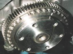 扭震阻尼器(平衡塊)安裝于曲軸前端(內部為鐡芯及硅膠.此扭震阻尼器(平衡塊)可提供曲軸的保護于額定速度下,如扭震阻尼器(平衡塊)損毀需立刻更換,否則會引致曲軸損毀