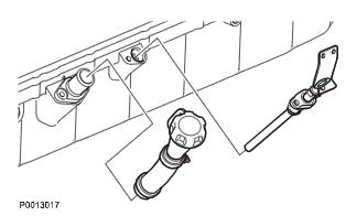 24 徹底清潔油底殼。檢查沃爾沃發動機油底殼橡膠密封件是否需要更換。去掉前曲軸密封蓋上的多余密封劑。去掉正時盤和飛輪殼上的多余密封劑。在接頭處涂抹新的密封劑并在 20 分鐘內安裝油底殼。