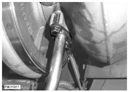 4 松開兩顆螺釘,然后拆下底部隔熱罩。從渦輪增壓器上拆下排氣門短軸。