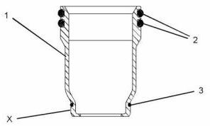 4. 在電子單體噴油器套筒(1)的表面(X)上涂抹一小片連續的工具(C)。