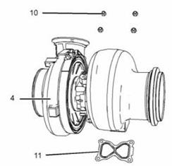 如果安裝了新的卡特C15珀金斯2506柴油機渦輪增壓器,請松開V形帶箍并將軸承殼和壓縮機殼旋轉到正確的位置。