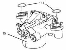 11. 從卡特C13珀金斯2206發(fā)動機機油冷卻器機油濾清器底座(15)上拆下O形密封圈(14)。