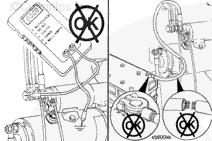 如果萬用表不顯示電壓值,檢查連接起動馬達電磁閥與蓄電池的電纜是否斷裂。并檢查端子是否松動或腐蝕。