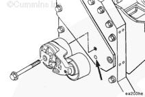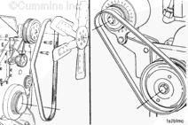 安裝風扇輪轂支架和風扇。 步驟 008-036。安裝并調整風扇驅動皮帶。 步驟 008-002。安裝并調整充電機驅動皮帶。 步驟 013-005。