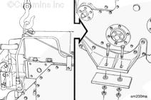 將發動機降落在橫梁上。將前支架安裝在橫梁上。安裝螺栓并擰緊。參考制造商技術規范中正確的扭矩值。