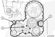 安裝齒輪室蓋油封。參考以下: 步驟 001-001、步驟 001-003和步驟 001-023。