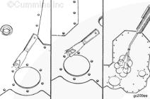 用木槌整平輕微彎曲的齒輪室蓋是可以接受的。將齒輪室蓋放在平面上,并敲擊蓋上彎曲的部位。