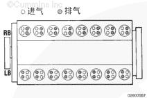 本圖所示為 KTA38 和 QSK38 發動機進氣門和排氣門的位置。
